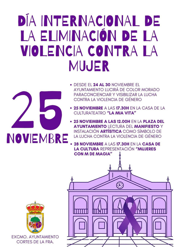 - Desde el 24 al 30 noviembre el Ayuntamiento lucirá de color morado para concienciar y visibilizar la lucha contra la violencia de género.