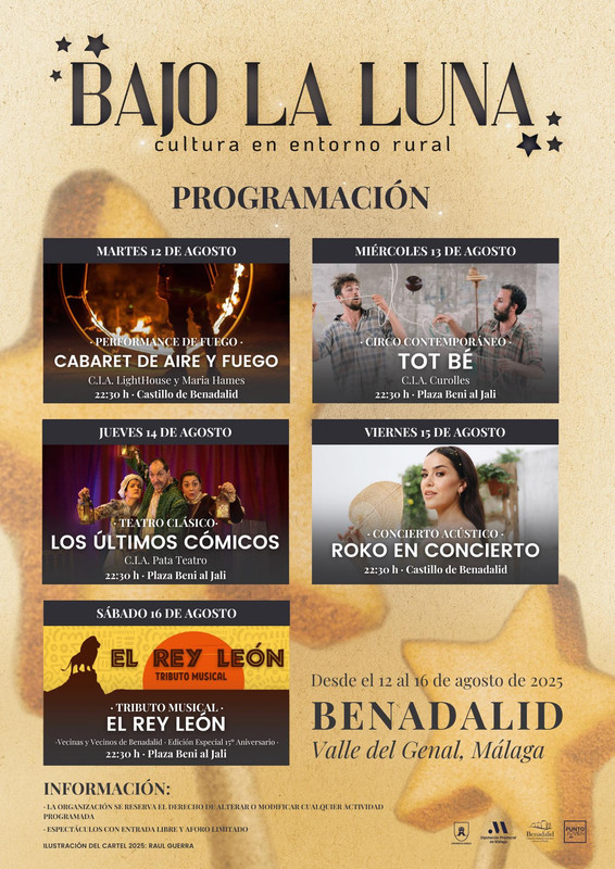 Un festival pensado para todos los públicos, donde el arte, la música, el teatro y el circo transforman a Benadalid en un gran escenario bajo las estrellas.