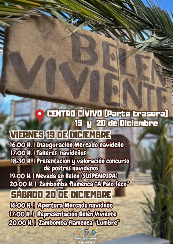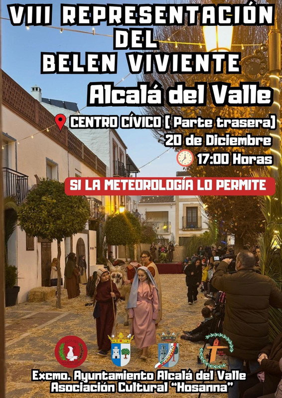 - 17:00 h – Representación del Belén Viviente (si la meteorología lo permite)