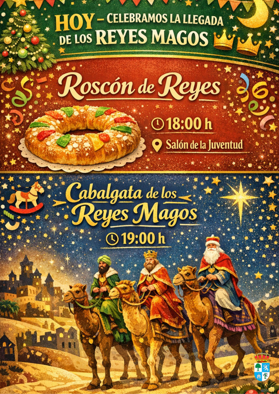 - 19:00h Cabalgata Reyes Magos. Salida desde el Salón de la Juventud. Acompaña la Escuela de Música Municipal de Algatocín