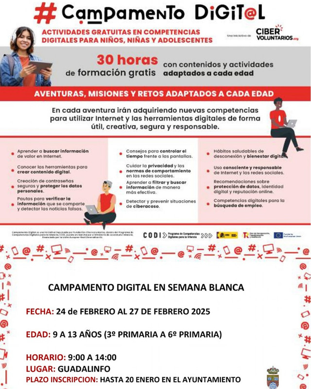 Los interesados pueden inscribirse hasta el 20 de enero en el Ayuntamiento. Esta actividad representa una excelente oportunidad para que los menores desarrollen habilidades digitales fundamentales durante sus vacaciones de Semana Blanca, mientras se divierten y aprenden en un entorno seguro y supervisado.