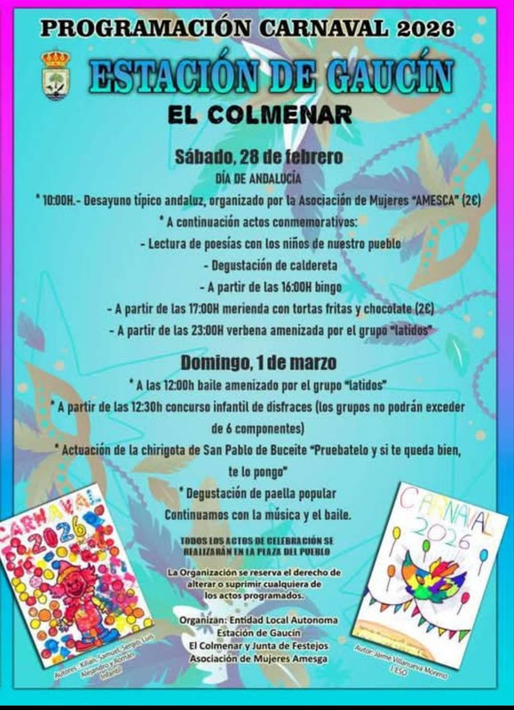 Organizan: Entidad Local Autonoma Estación de Gaucin El Colmenar y Junta de Festejos Asociación de Mujeres Amesga
