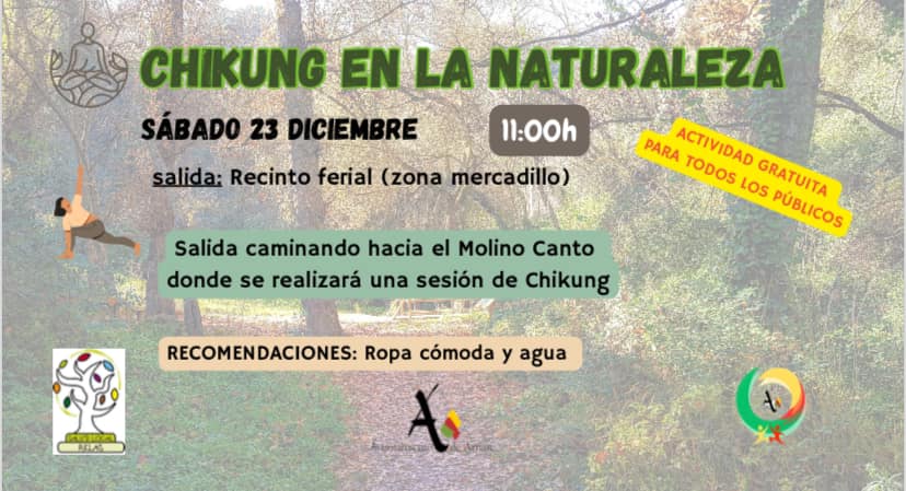 CHIKUNG EN LA NATURALEZA (Molino Canto) El próximo sábado día 23, vamos a disfrutar de nuestro entorno natural, practicándo deporte y equilibrando las energías para finalizar el año de la mejor forma posible.