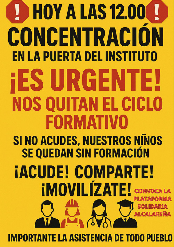 Hoy a las 12:00h habrá una concentración en la puerta del instituto para defender el ciclo formativo que quieren eliminar.
