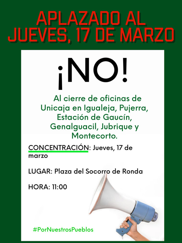 Concentración en contra del cierre de las oficinas de Unicaja en Igualeja, Pujerra, Estación de Gaucín, Yunquera, Genalguacil, Jubrique y Montecorto