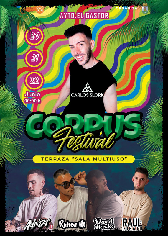 Con motivo de fiesta del Corpus, la localidad de El Gastor se vuelve a vestir de gala para el día del Corpus Christi 2025, fiesta de interés turístico Nacional...Fiesta en que todo un pueblo y sus visitantes se unen para que el fin de semana sea una experiencia única e irrepetible. El line up de este cartel, ha sido elaborado con el objetivo de cubrir todos los gustos y colores... 3 días de música variada y diversión asegurada.