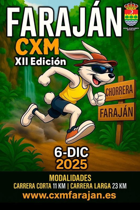 - CxM Faraján – Distancia larga: 23 kilómetros con 1323 metros de desnivel positivo. (máximo 350 participantes) con salida las 09:30h desde la plaza de Faraján.