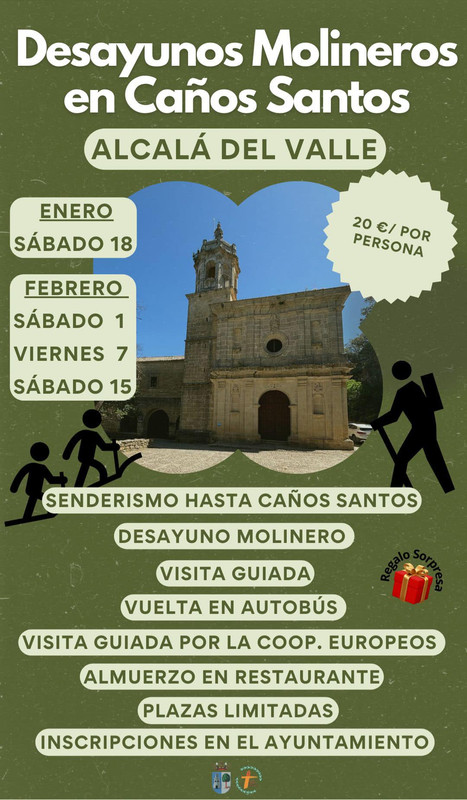 Plazas limitadas. Inscripciones en el Ayuntamiento de Alcalá del Valle. Precio 20€ por persona.