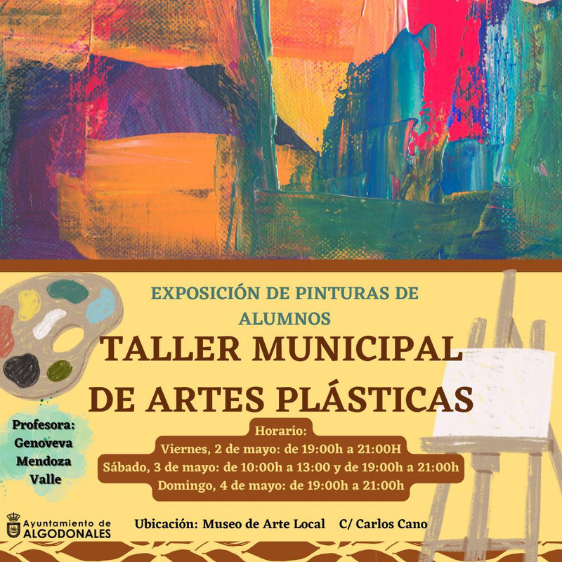 Los alumnos de Genoveva Mendoza Valle, del taller municipal de artes plásticas, colocaran algunos de sus lienzos este fin de semana en el Museo de Arte Local para todos aquellos y aquellas que quieran ver el talento y la imaginación de muchos de nuestros vecinos, tanto de adultos como de los más pequeños ????????️????????????????????????. Si estás interesado podrás verlos en el siguiente horario: