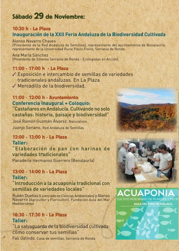 EXTIERCOL (Cuevas del Becerro), Semillateca Rusta (Cortes de la Frontera), Casa de Semillas -Serrania de Ronda (Benalauría), El Perol (Arriate), Red Malagueña de Semillas y Red Andaluza de Semillas