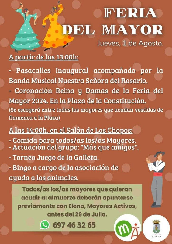 Todos/as los/as mayores que quieran acudir al almuerzo deberán apuntarse previamente con Elena, Mayores Activos,