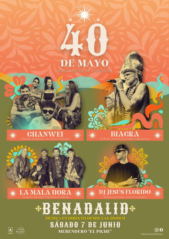El próximo sábado 7 de junio a partir de las 8 de la tarde Benadalid celebrará la cuarta edición del festival ’40 de Mayo, música desde el atardecer’, una cita en la que cuatro grupos tocarán en directo hasta la madrugada en un precioso entorno natural.