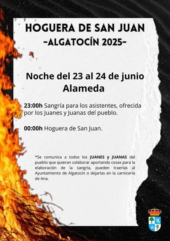Se comunica a todos los JUANES Y JUANAS del pueblo que quieran colaborar aportando cosas para la elaboración de la sangría, pueden traerlas al Ayuntamiento de Algatocín o dejarlas en la carnicería de Ana.