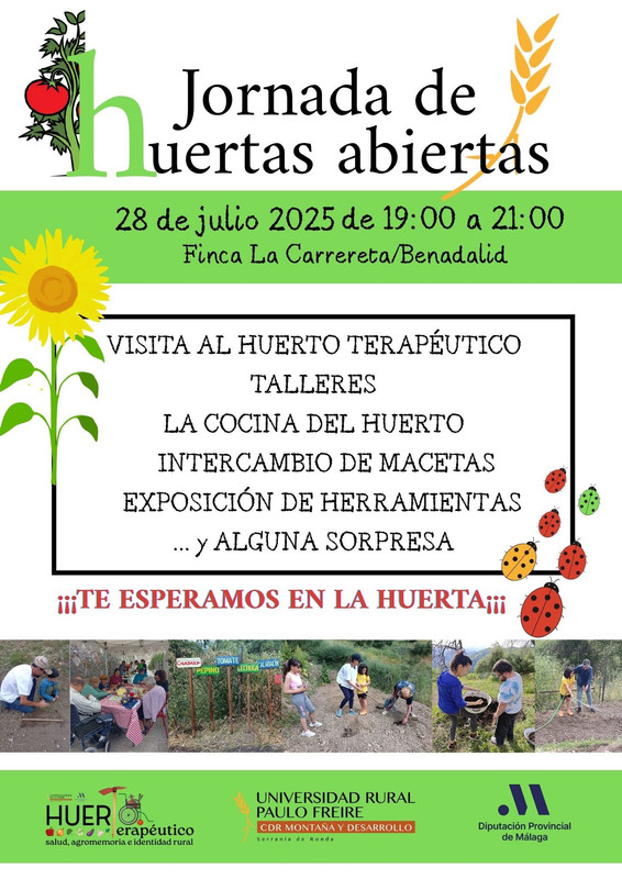 Jornada de Huertas abiertas en el Huerto Terapeútico de Benadalid. Te esperamos este lunes a las 19:00 en el Centro Social para contarte lo que hacemos entre los bancales de la Finca La Carrereta, por debajo de la Escuela.