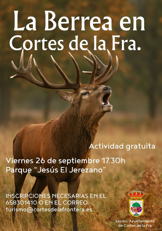 Actividad gratuita. Previa inscripción 658 301 410 turismo@cortesdelafrontera.es