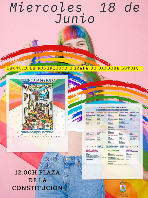 Este Miércoles 18 de Junio Lectura de manifiesto e izada de bandera LGTBIQ+ En la Plaza de la Constitución de El Gastor