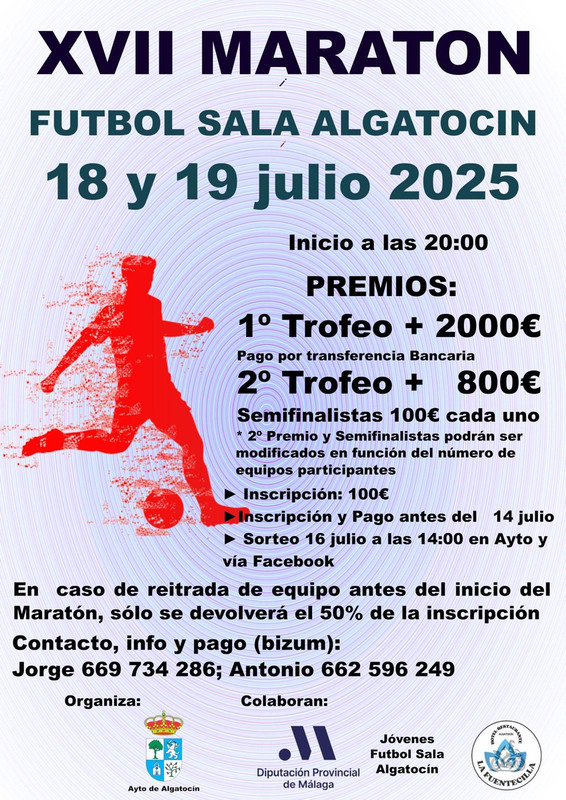 Colaboran: Diputación Provincial de Málaga y Jóvenes Futbol Sala Algatocin