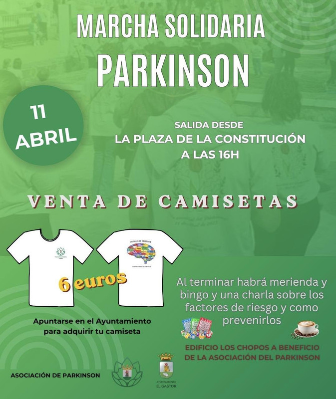 17:00 h - Merienda a beneficio de la Asociación de Párkinson en Salón Los Chopos