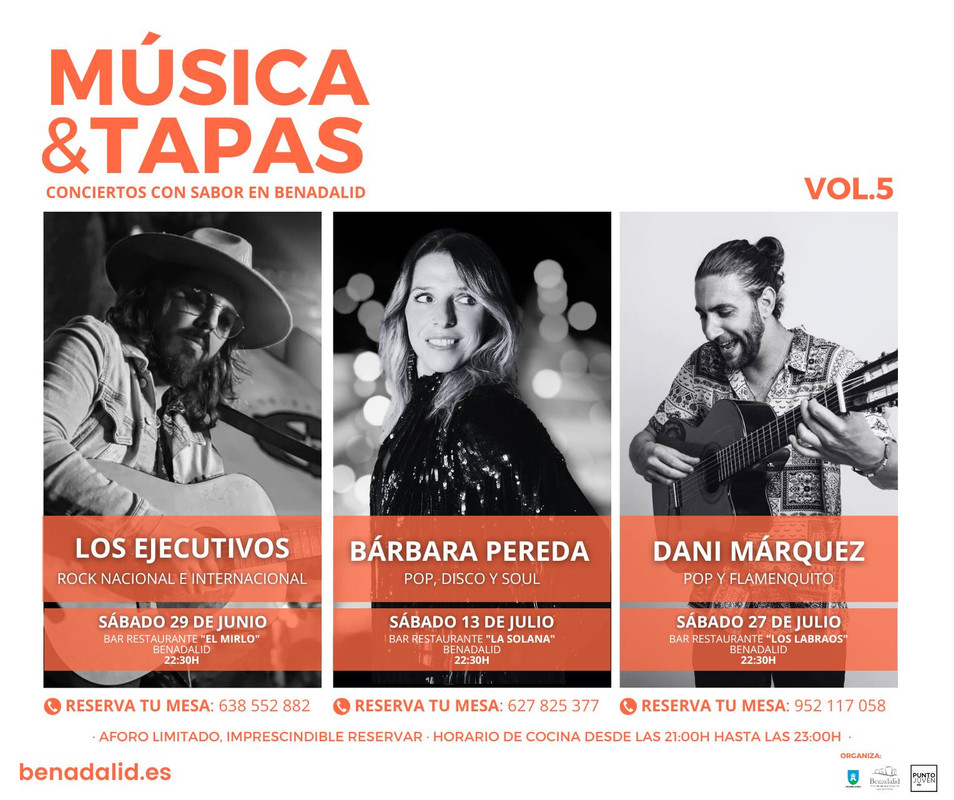 Vuelve a disfrutar de la mejor música en directo y de las propuestas gastronómicas de los restaurantes de Benadalid con nuestros conciertos "Música & Tapas". Un proyecto que ya ha celebrado en Benadalid 11 conciertos en sus cuatro ediciones anteriores.