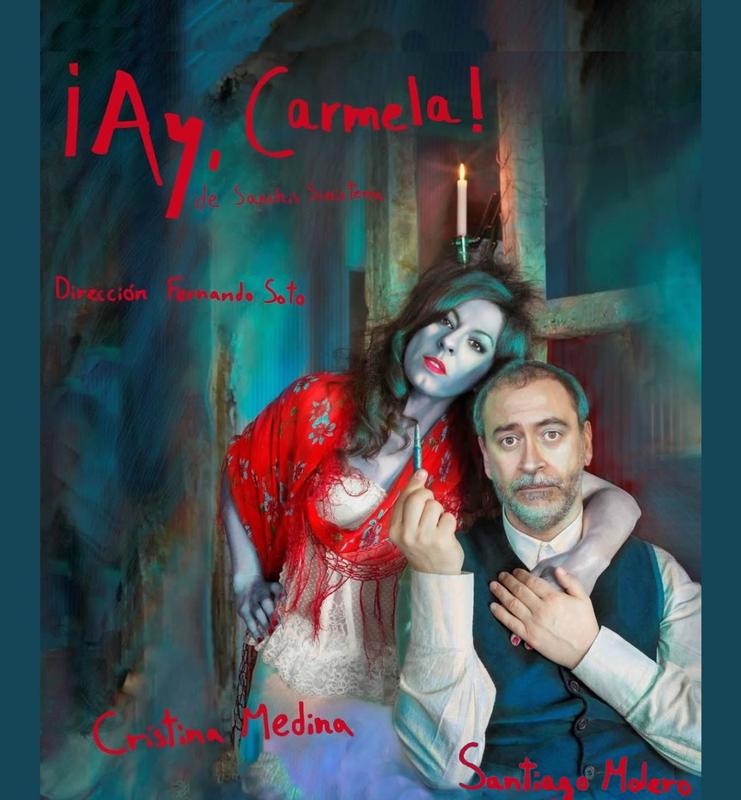 Teatro ¡Ay, Carmela! de Sanchis Sinisterra dirigida por Fernando Soto interpretado por Cristina Medina y Santiago Molero. Premio Mejor Espectáculo Feria de Teatro en el sur 2018. Notas del director: En el caso de nuestra Carmela, queremos volver a lo que creemos que son los orígenes de este texto, la relación de dos pobres seres humanos (en este caso dos cómicos) en un contexto tan brutal como es una guerra, donde la palabra justicia se vuelve sorda por el ruido de las bombas.