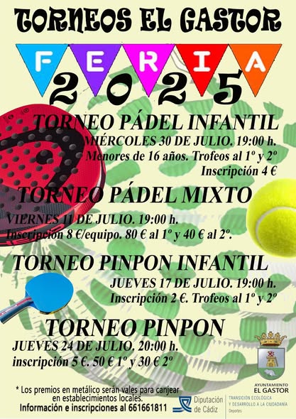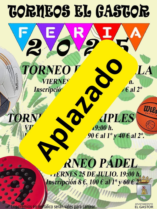 (18/07/2025) El Ayuntamiento de El Gastor informa que el torneo queda aplazado hasta el 29 de agosto