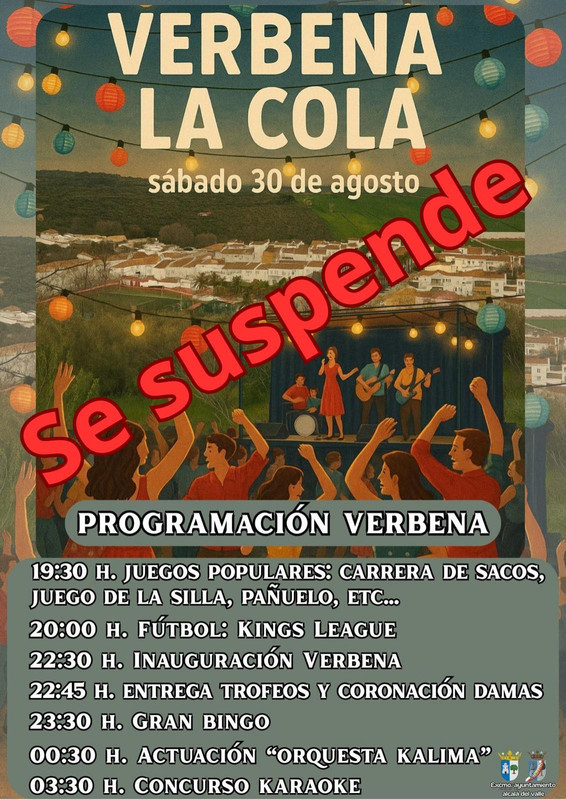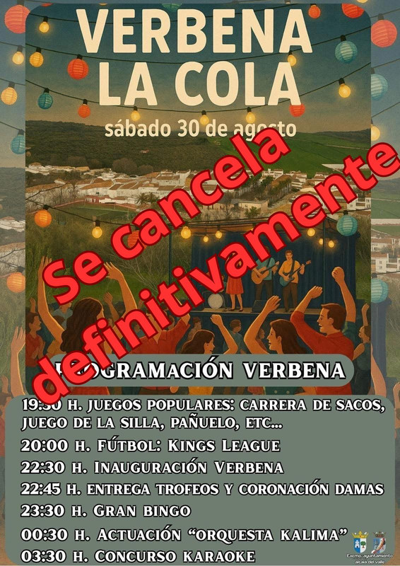 La verbena prevista para la barriada de La Colá en este año 2025 queda definitivamente suspendida y se pospone al próximo año.